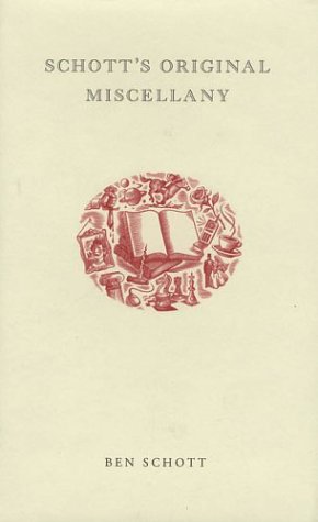 Impossible to read at one sitting, but utterly unputdownable, Schott's Original Miscellany is a unique collection of fabulous trivia.What other book boasts an index that includes shoelace lengths, sign language, and the seven deadly sins; dueling and dwarves; the hair color of Miss America and the Hampton Court maze?Where else can you find, packed onto one page, the names of golf strokes, a history of the Hat Tax, cricketing dismissals, nouns of assemblage, an unofficial motto of the US Postal Service, and the flag of Guadeloupe?Where else but Schott's Original Miscellany will you stumble across John Lennon's cat, the supplier of bagpipes to the Queen, the labors of Hercules, and the brutal methods of murder encountered by Miss Marple?A boo